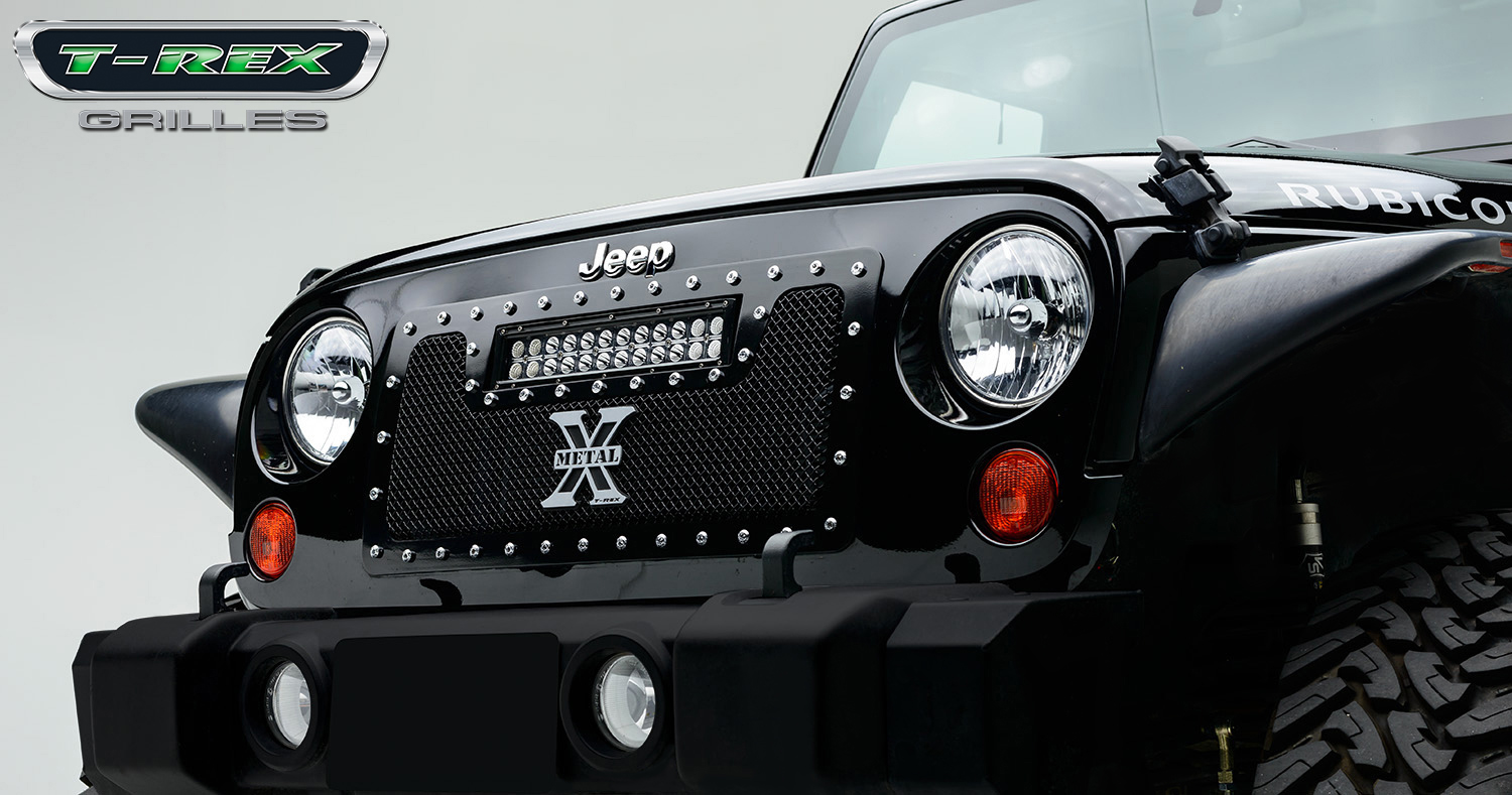 2007-2018 Jeep JK, JKU Torch Grille, Black, 1 Pc, Insert, Chrome Studs, Incl. (1) 12" LED - PN #6314831