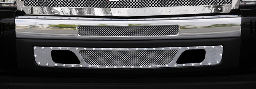 2009-2013 Silverado 1500, 07-10 HD X-Metal Bumper Grille, Polished, 2 Pc, Bolt-On, Chrome Studs - PN #6721120