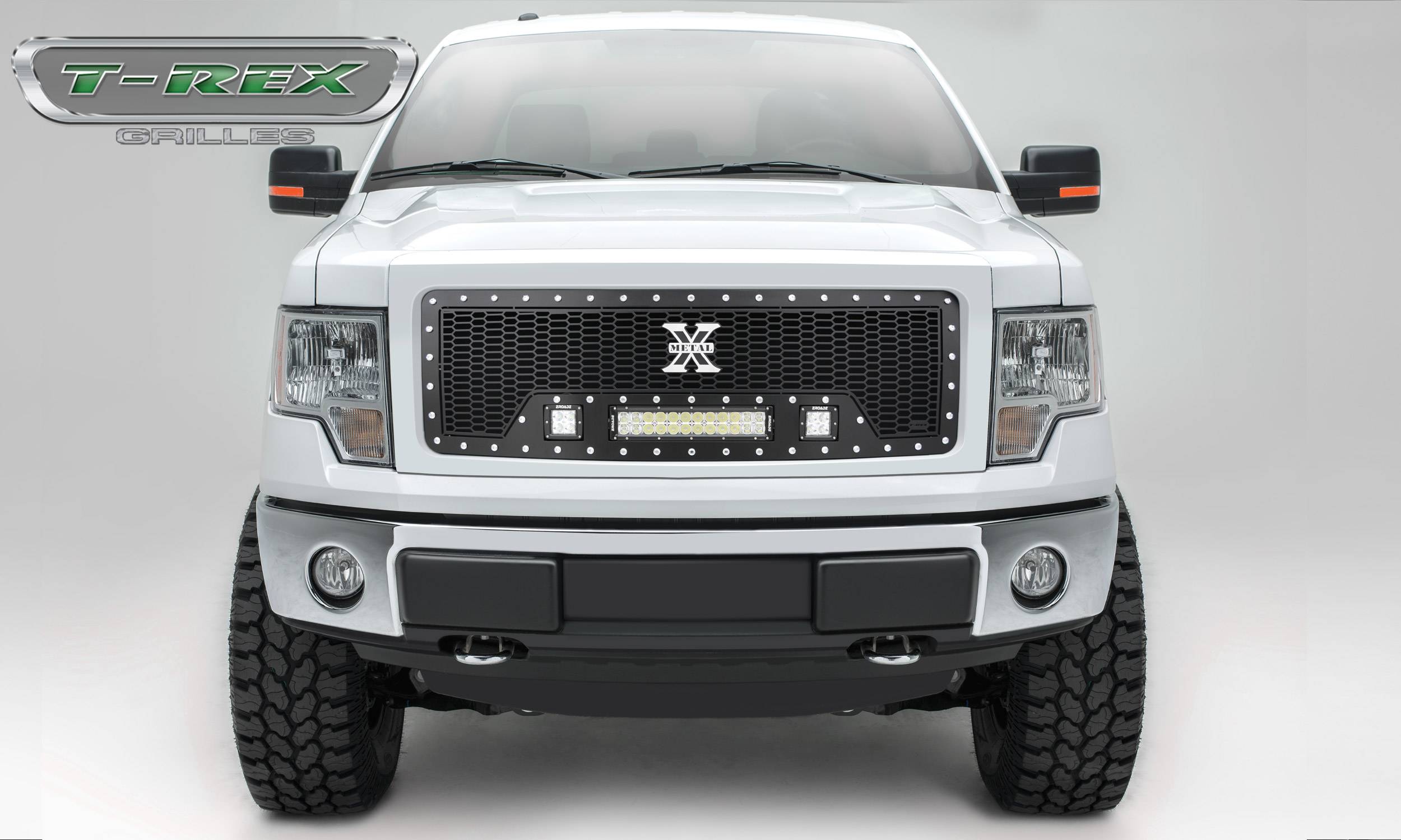 2013-2014 F-150 Laser Torch Grille, Black, 1 Pc, Insert, Chrome Studs, Incl. (2) 3" LED Cubes and (1) 12" LEDs - PN #7315721