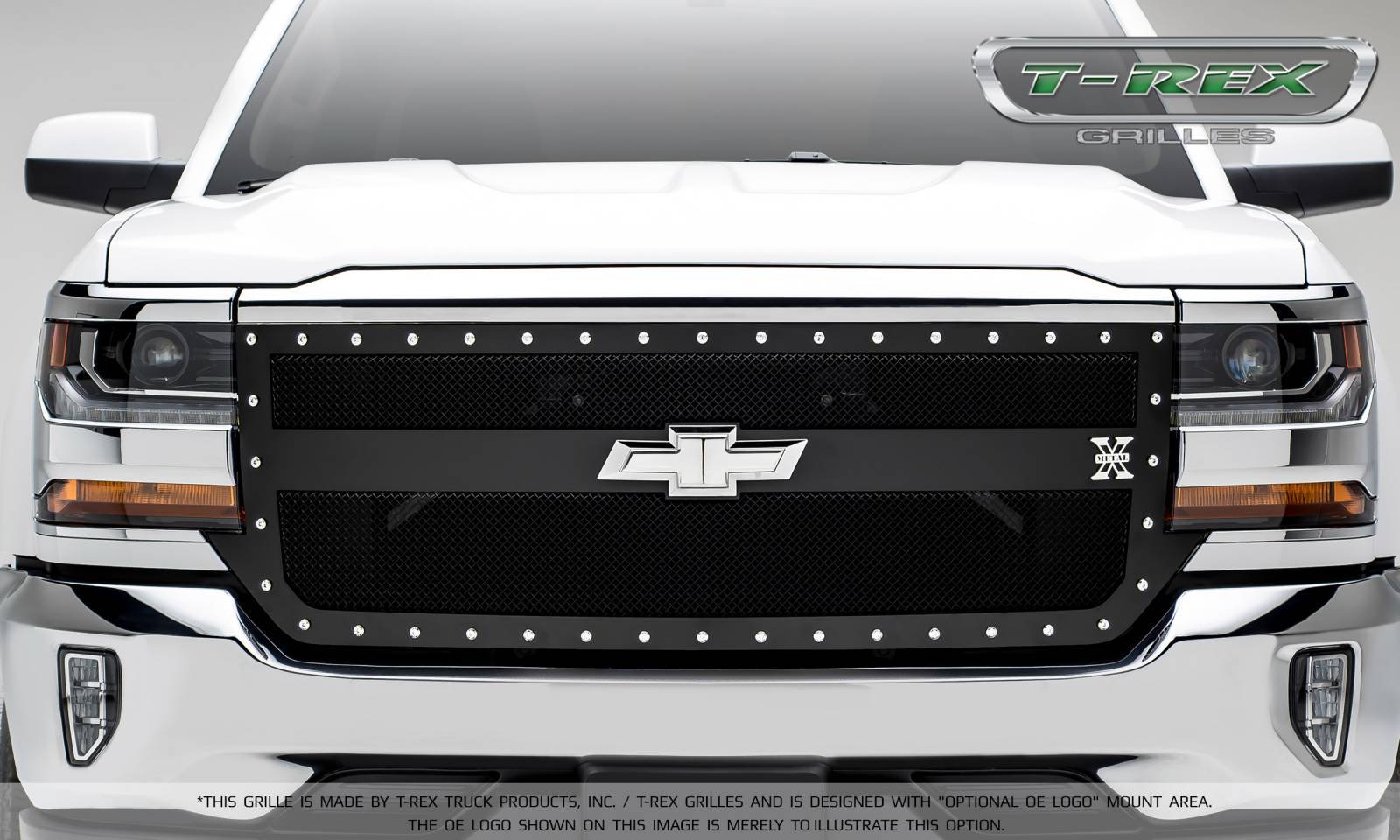 2016-2018 Silverado 1500 X-Metal Grille, Black, 1 Pc, Replacement, Chrome Studs, 1 Bar Design - PN #6711291