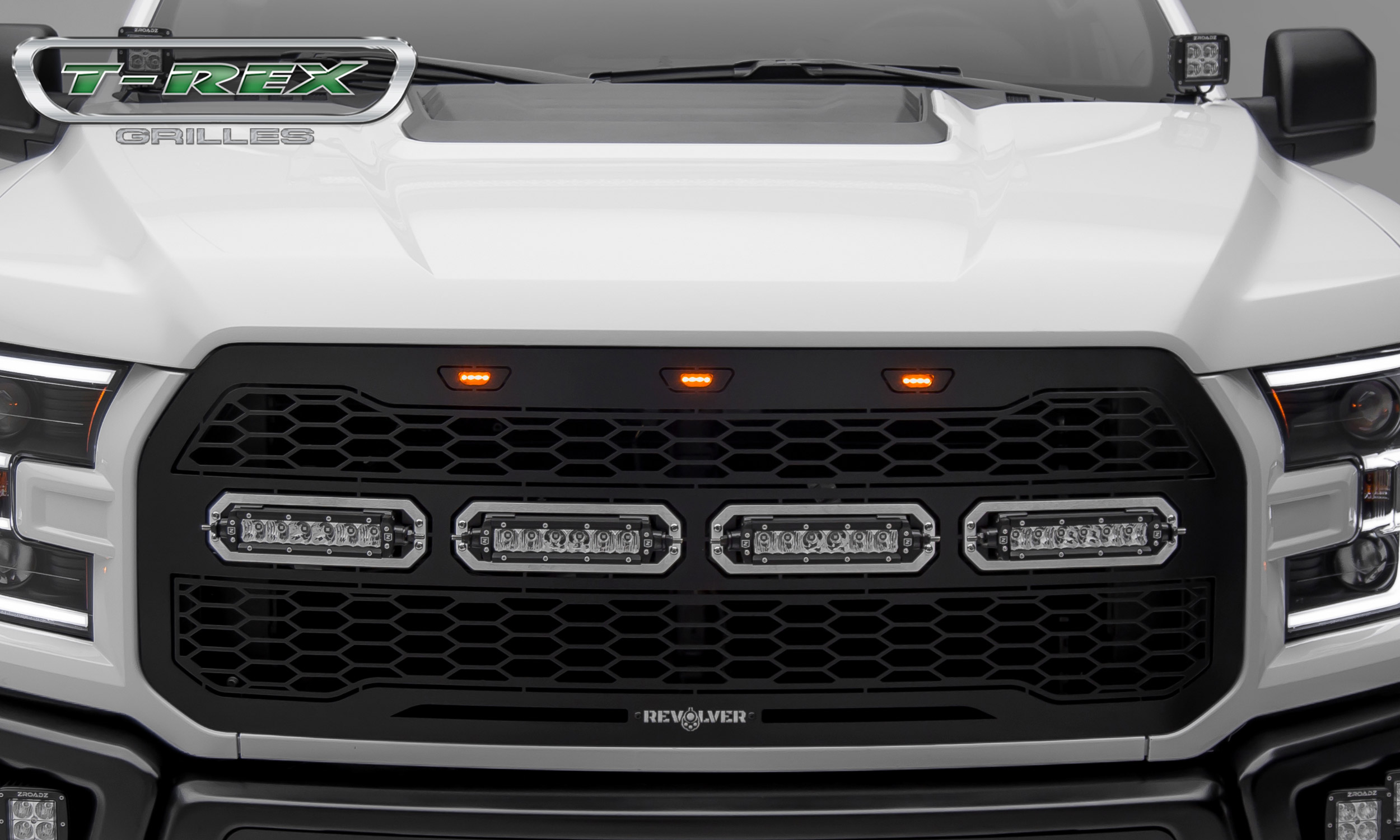 2017-2019 F-150 Raptor SVT Revolver Grille, Black, 1 Pc, Replacement, Chrome Studs, Incl. (4) 6" LEDs, without Forward Facing Camera - PN #6515661
