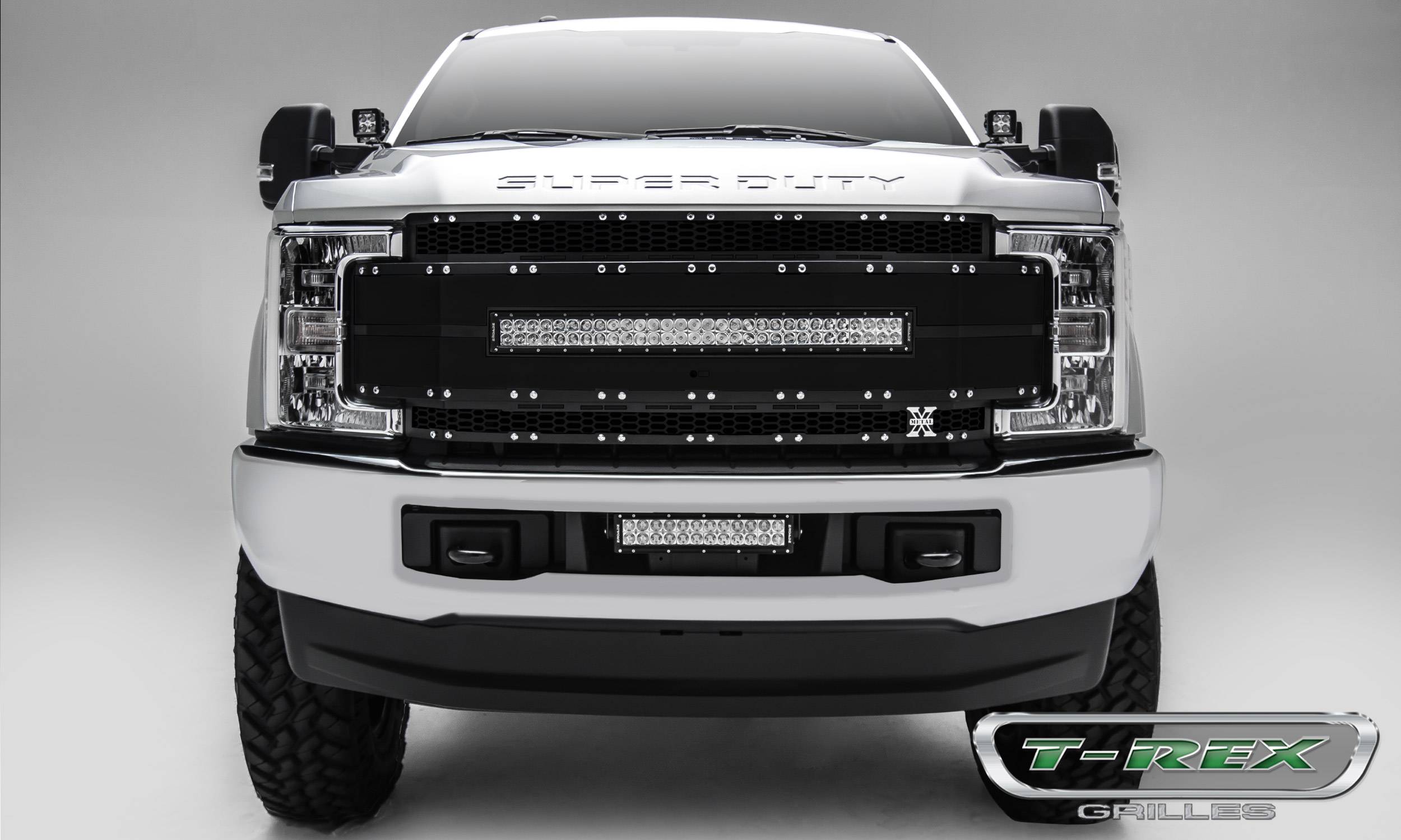 2017-2019 Super Duty Torch AL Grille, Black Mesh and Trim, 1 Pc, Replacement, Chrome Studs, Incl. (1) 30" LED, Fits Vehicles with Camera - PN #6315491