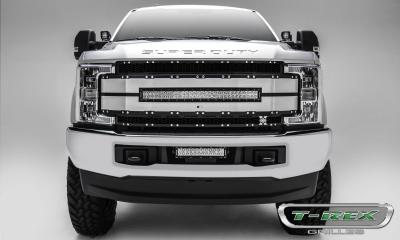 2017-2019 Super Duty Torch AL Grille, Black Mesh, Brushed Trim, 1 Pc, Replacement, Chrome Studs, Incl. (1) 30" LED, Fits Vehicles with Camera - PN #6315493