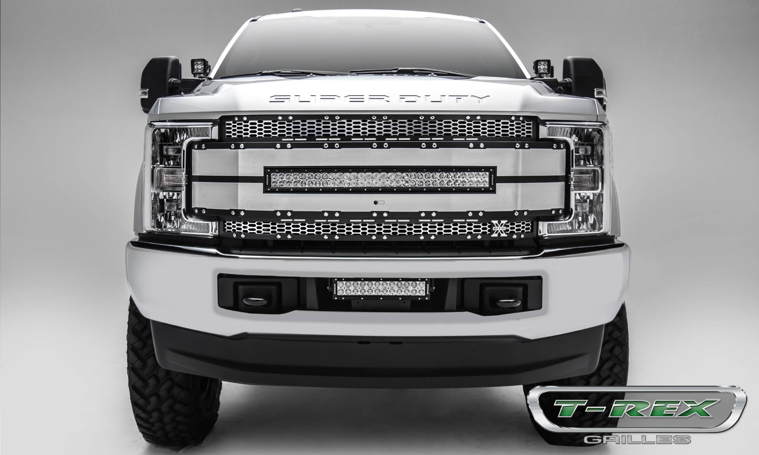2017-2019 Super Duty Torch AL Grille, Brushed Mesh and Trim, 1 Pc, Replacement, Chrome Studs, Incl. (1) 30" LED, Fits Vehicles with Camera - PN #6315495 Brand: