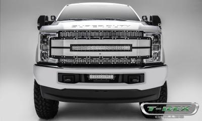 2017-2019 Super Duty Torch AL Grille, Brushed Mesh and Trim, 1 Pc, Replacement, Chrome Studs, Incl. (1) 30" LED, Fits Vehicles with Camera - PN #6315495