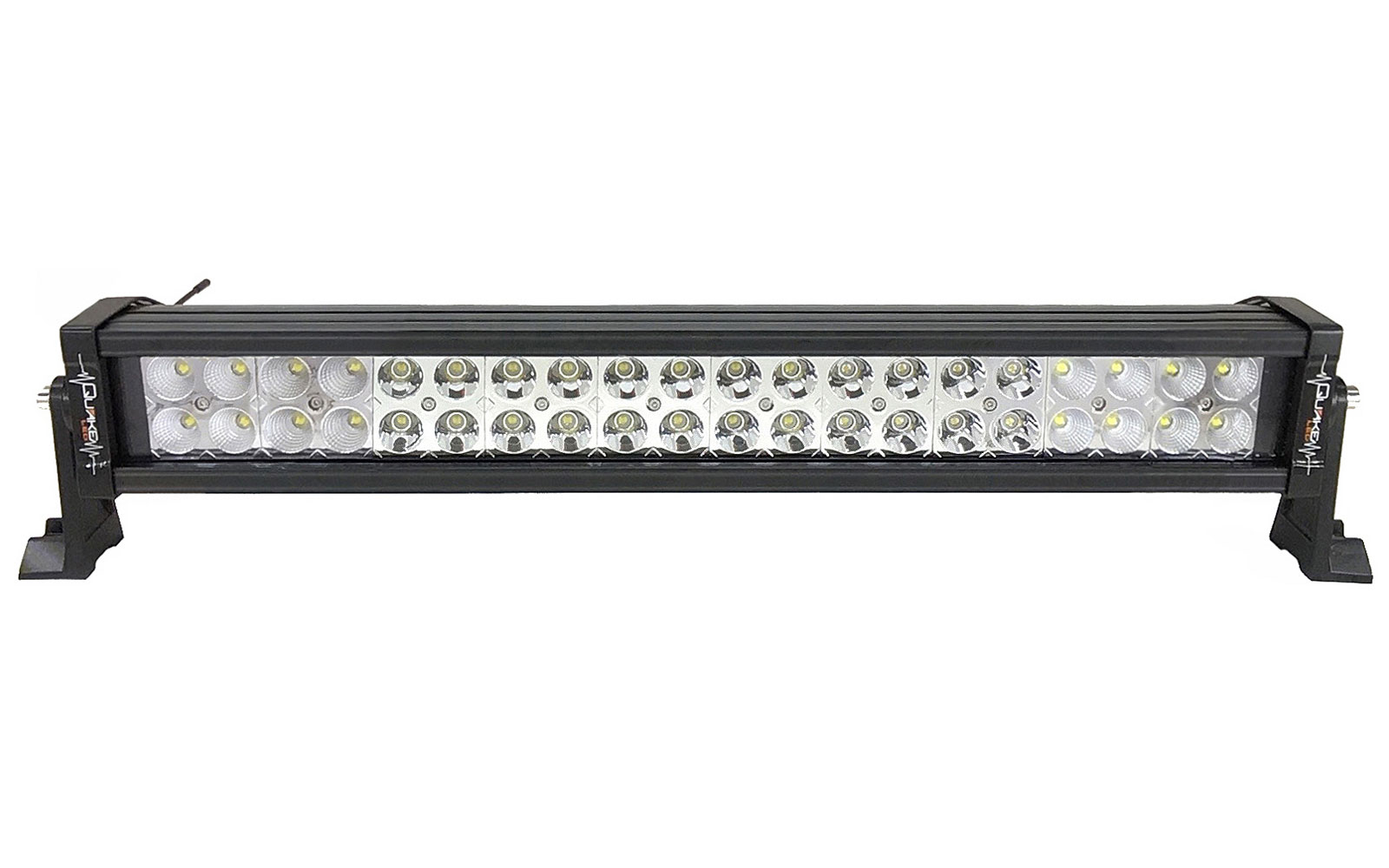 Construction Compacted in a dual row, indestructible housing and with lenses that harness Quake's Hybrid Optic System, Quake LED light bars are strong, durable, and weatherproof making them extremely resistant to impacts, vibration, and other intense conditions. Quake Super Nova Series Light Bars are protected behind thick polycarbonate lenses, encased in cast aluminum housing with a black powder coat finish, and are rated at IP67 for weather and waterproofing.