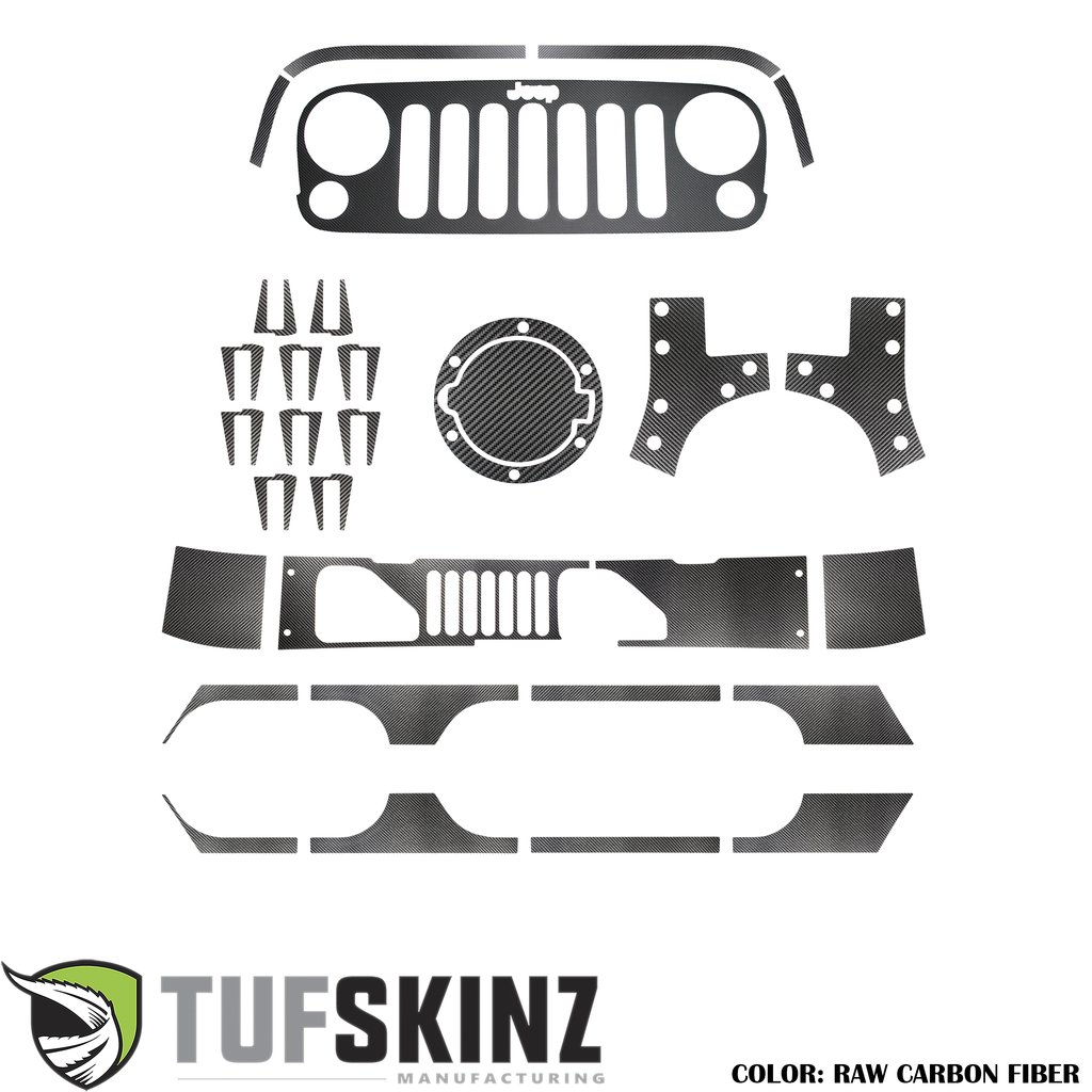 4 Door Exterior Trim Kit Fits 07-18 Jeep Wrangler JK 4 Door 31 Piece Kit Raw Carbon Fiber Tufskinz