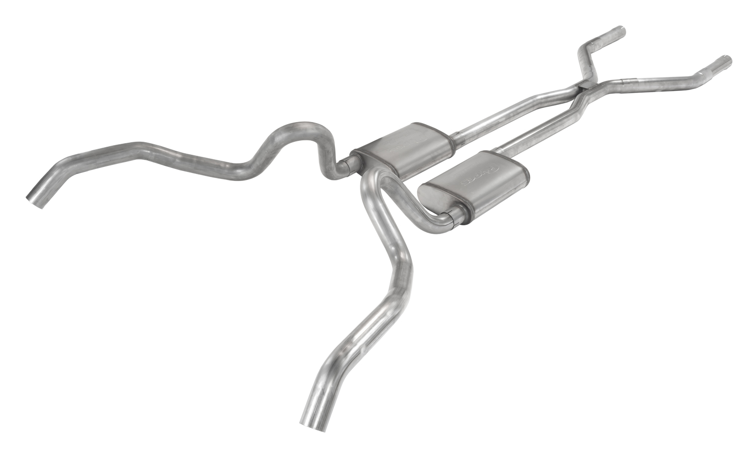 Crossmember Back w/H-Pipe Exhaust System 62-67 Nova Split Rear Dual Exit 2.5 in Intermediate And Tail Pipe Hardware Incl Muffler And Tip Not Incl Pypes Exhaust
