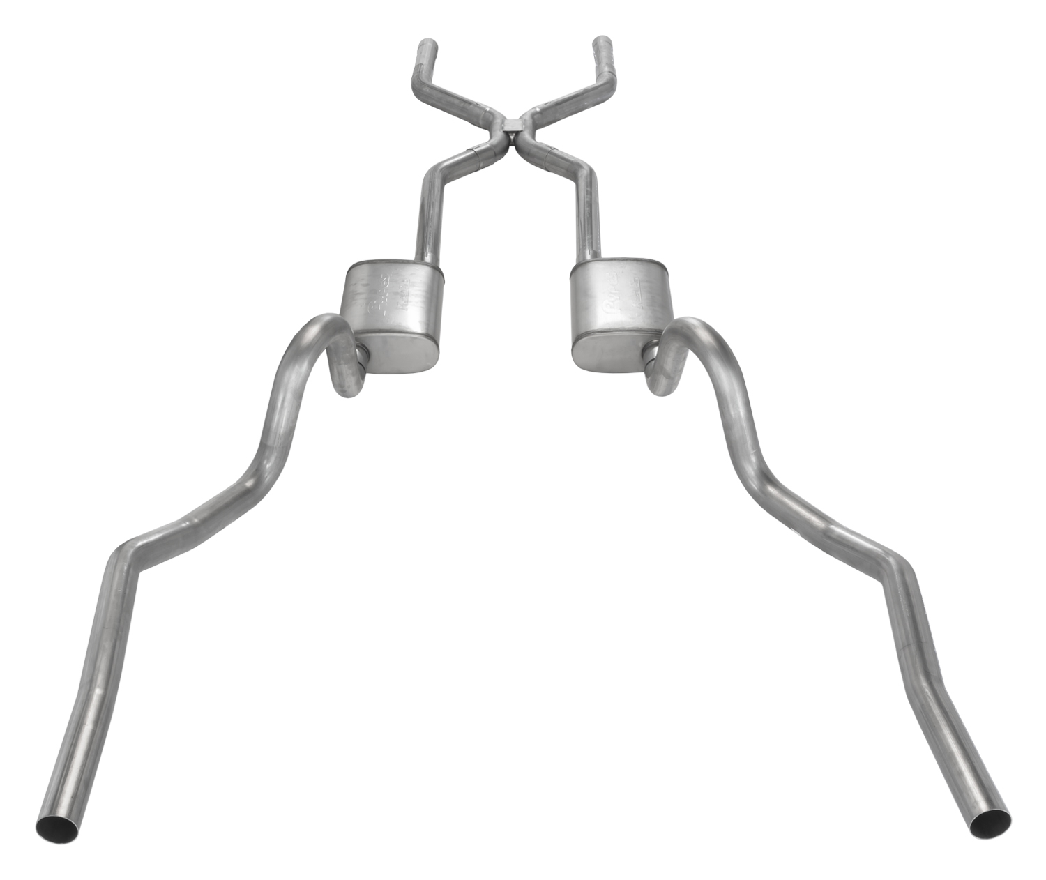 Crossmember Back w/H-Pipe Exhaust System 64-72 A-Body Split Rear Dual Exit 2.5 in Intermediate And Tail Pipe Muffler Not Incl Hardware Incl Tip Not Incl Pypes Exhaust Brand: