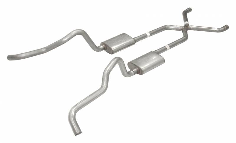 Crossmember Back w/X-Pipe Exhaust System 55-57 Chevy Wagon Split Rear Dual Exit 2.5 in Intermediate And Tail Pipe Hardware Incl Muffler And Tip Not Incl Pypes Exhaust Brand: