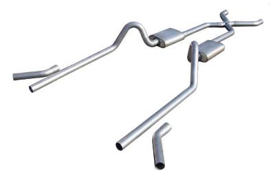 Crossmember Back w/X-Pipe Exhaust System 55-57 Tri-Five Chevy Split Rear Dual Exit 2.5 in Intermediate And Tail Pipe Hardware Incl Muffler And Tip Not Incl Pypes Exhaust Brand: