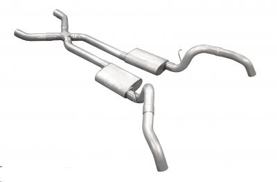 Crossmember Back w/X-Pipe Exhaust System 67-69 Split Rear Dual Exit 3 in Intermediate And Tail Pipe Race Pro Mufflers/Hardware Incl Tip Not Incl Natural 409 Stainless Steel Pypes Exhaust