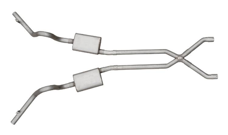 Crossmember Back w/X-Pipe Exhaust System 78-88 EL Camino Exc SS Split Rear Dual Exit 2.5 in Intermediate And Tail Pipe Muffler And Tip Not Incl Natural Finish 409 Stainless Steel Pypes Exhaust