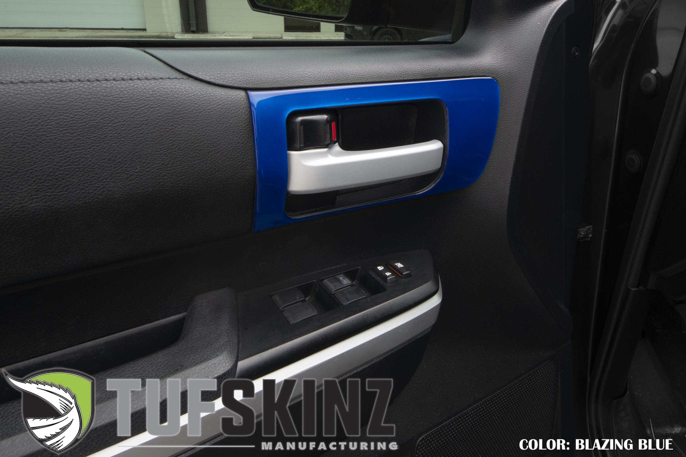 Add a new interior look to your Toyota Tundra by installing TUFSKINZ Door Handle Accents. These kits add style and protection to your vehicle and are fittingly positioned on the trim around each door handle.