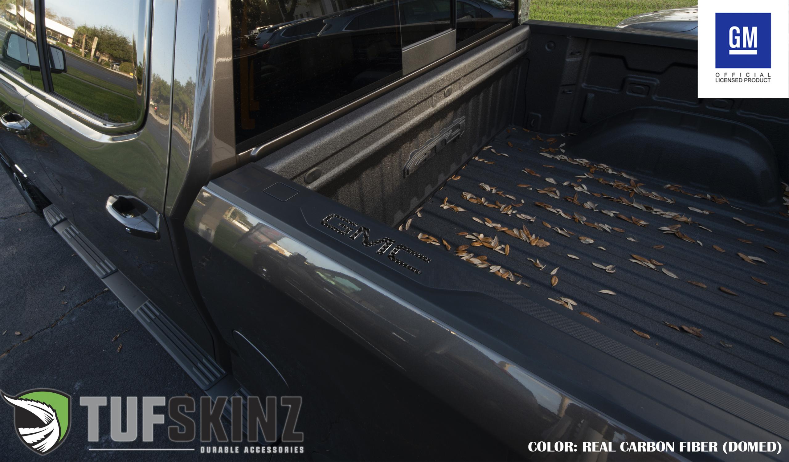 Add a new look to your GMC Sierra by installing TUFSKINZ Bed Rail Letter Inserts. This kit features raised and stylish GMC letter that are fittingly positioned in the truck's embossed bed rails.