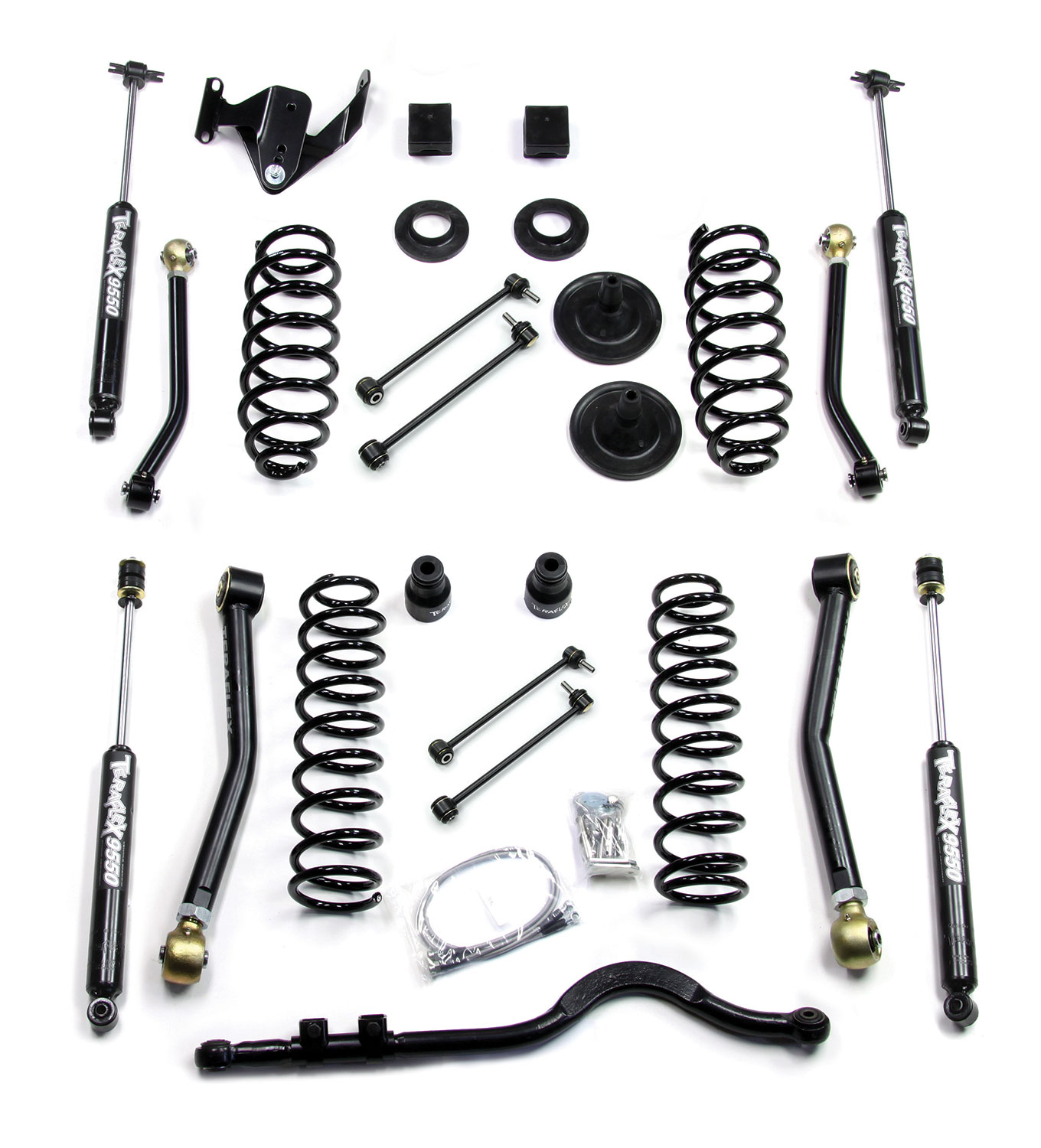 Jeep JK 4 Door 3 Inch Lift Kit W/4 FlexArms Trackbar And 9550 Shocks 07-18 Wrangler JK Unlimited TeraFlex