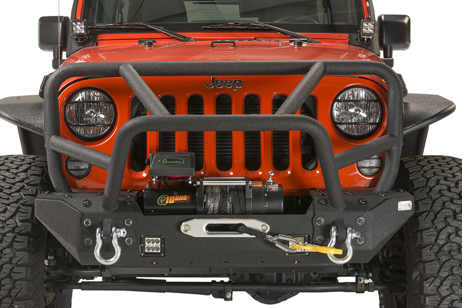Jeep JK Front Winch Bumper W/Full Grille Guard 07-18 Wrangler JK Steel Black Textured Powdercoat Fishbone Offroad