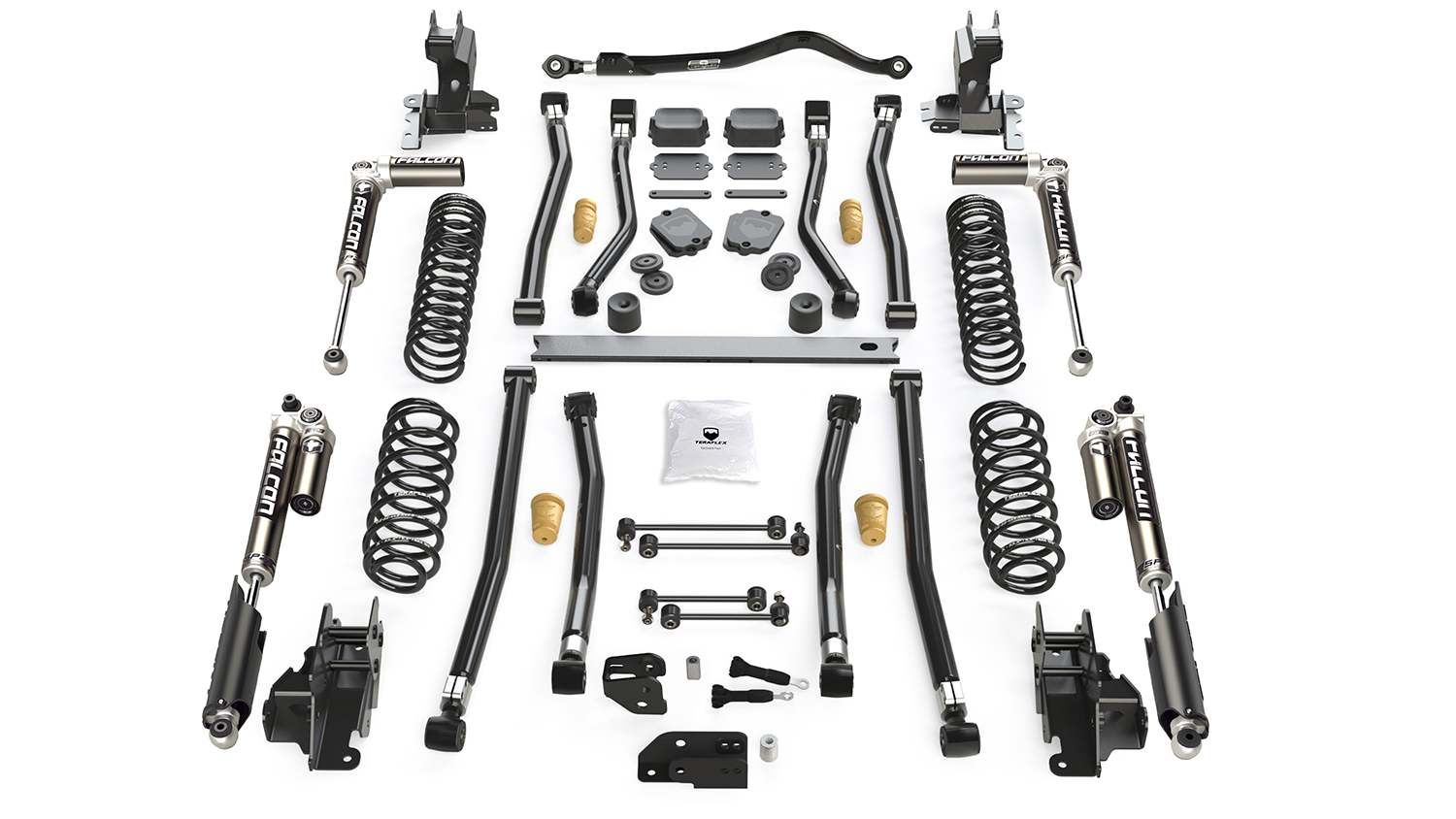 This all-inclusive system includes everything from the TeraFlex exclusive brake line anchor brackets to our industry leading adjustable Alpine Long Control Arms and Brackets. The Alpine CT4 is designed to flex and droop over boulders and fly across flats like nothing you have ever experienced. And like all TeraFlex lifts, the highway manners of the CT4 are legendary.