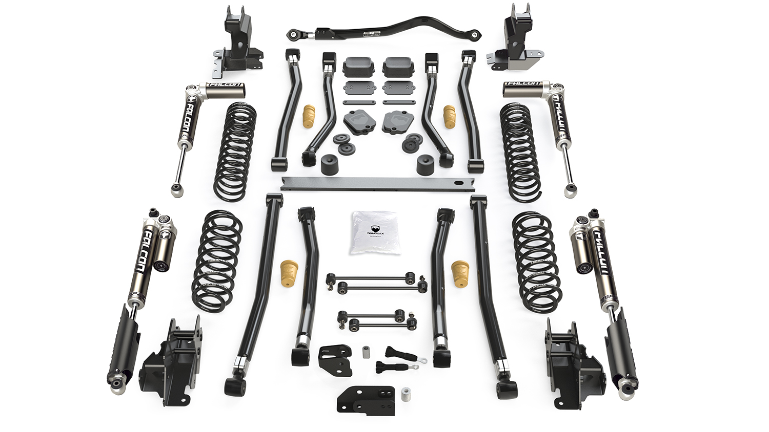 This all-inclusive system includes everything from the TeraFlex exclusive brake line anchor brackets to our industry leading adjustable Alpine Long Control Arms and Brackets. The Alpine CT4 is designed to flex and droop over boulders and fly across flats like nothing you have ever experienced. And like all TeraFlex lifts, the highway manners of the CT4 are legendary.