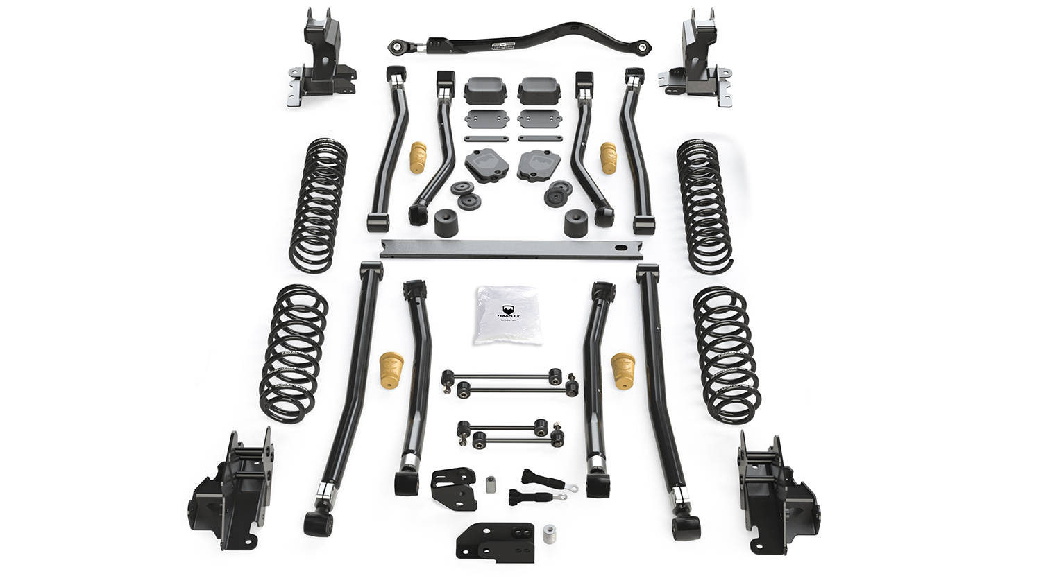This all-inclusive system includes everything from the TeraFlex exclusive brake line anchor brackets to our industry leading adjustable Alpine Long Control Arms and Brackets. The Alpine CT4 is designed to flex and droop over boulders and fly across flats like nothing you have ever experienced. And like all TeraFlex lifts, the highway manners of the CT4 are legendary.