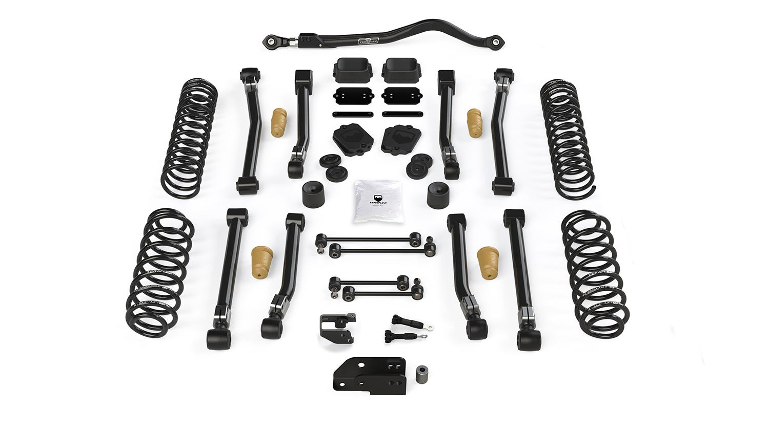 This results in improved suspension geometry and relaxed control arm angles for a superior ride quality and performance regardless of terrain. These systems restore front and rear roll axis angles to minimize brake dive and acceleration squat. TeraFlex suspension systems provide reduced noise, vibration, and harshness (NVH).