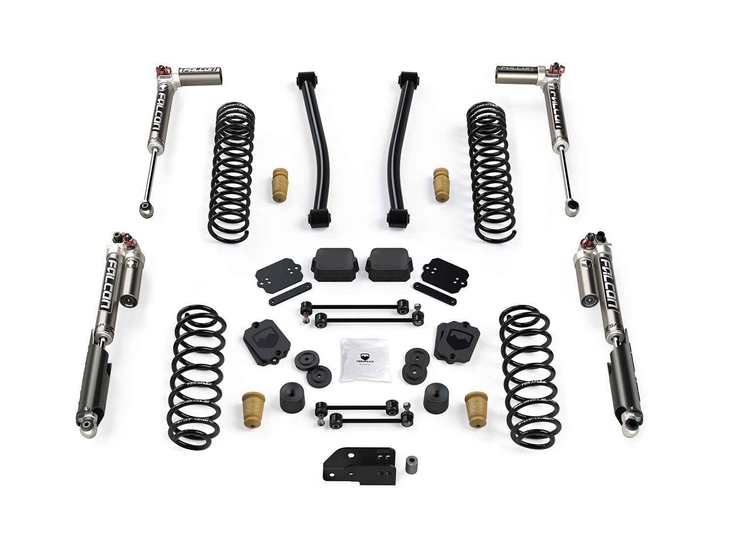 Does Not include shocks. We recommend Falcon Performance SP2 Mode Adjust Shocks. Falcon shock absorbers and TeraFlex lift coil springs have been engineered together to improve both compression and rebound for optimal vehicle stability.