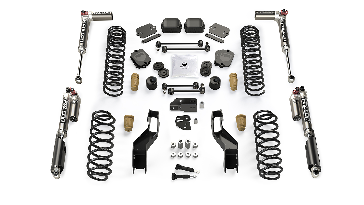 Does not include shocks. We recommend Falcon Performance SP2 Mode Adjust Shocks. Falcon shock absorbers and TeraFlex lift coil springs have been engineered together to improve both compression and rebound for optimal vehicle stability.