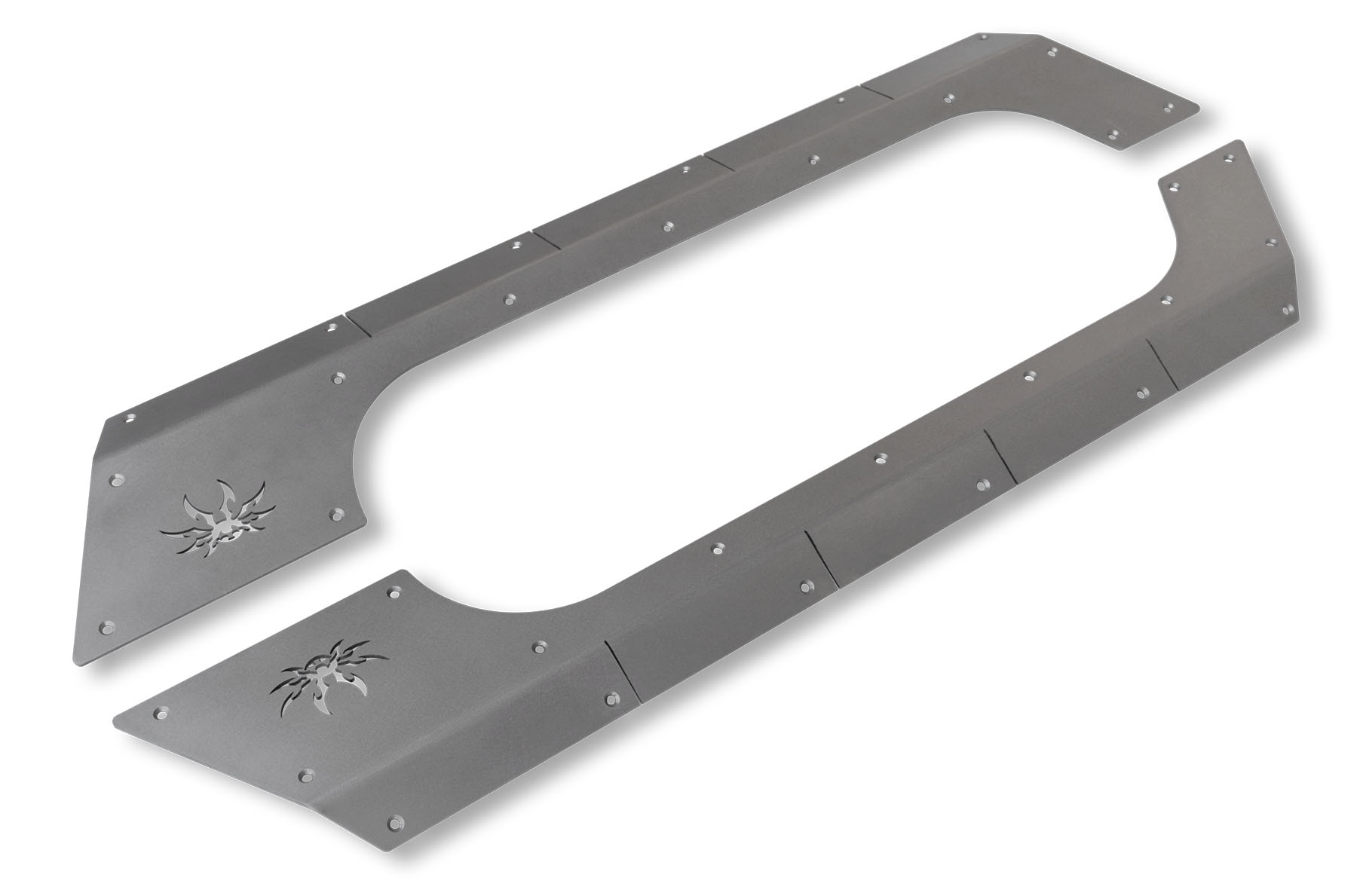Used by itself, JK Body Armor hugs the Jeeps body contours to provide protection with no loss of ground clearance. Used with the factory Rubicon rocker rails, the JK Body Armor helps prevent trail damage that can be caused by rocks pushing the factory rocker rails up into the body.