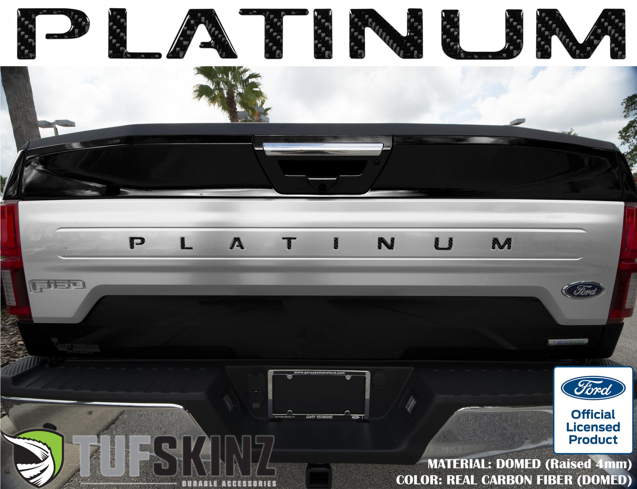 Add a new look to your Ford F-150 Platinum by installing TUFSKINZ Tailgate Letter Inserts. This kit features raised and stylish Platinum letters that are fittingly positioned in the truck's embossed tailgate.