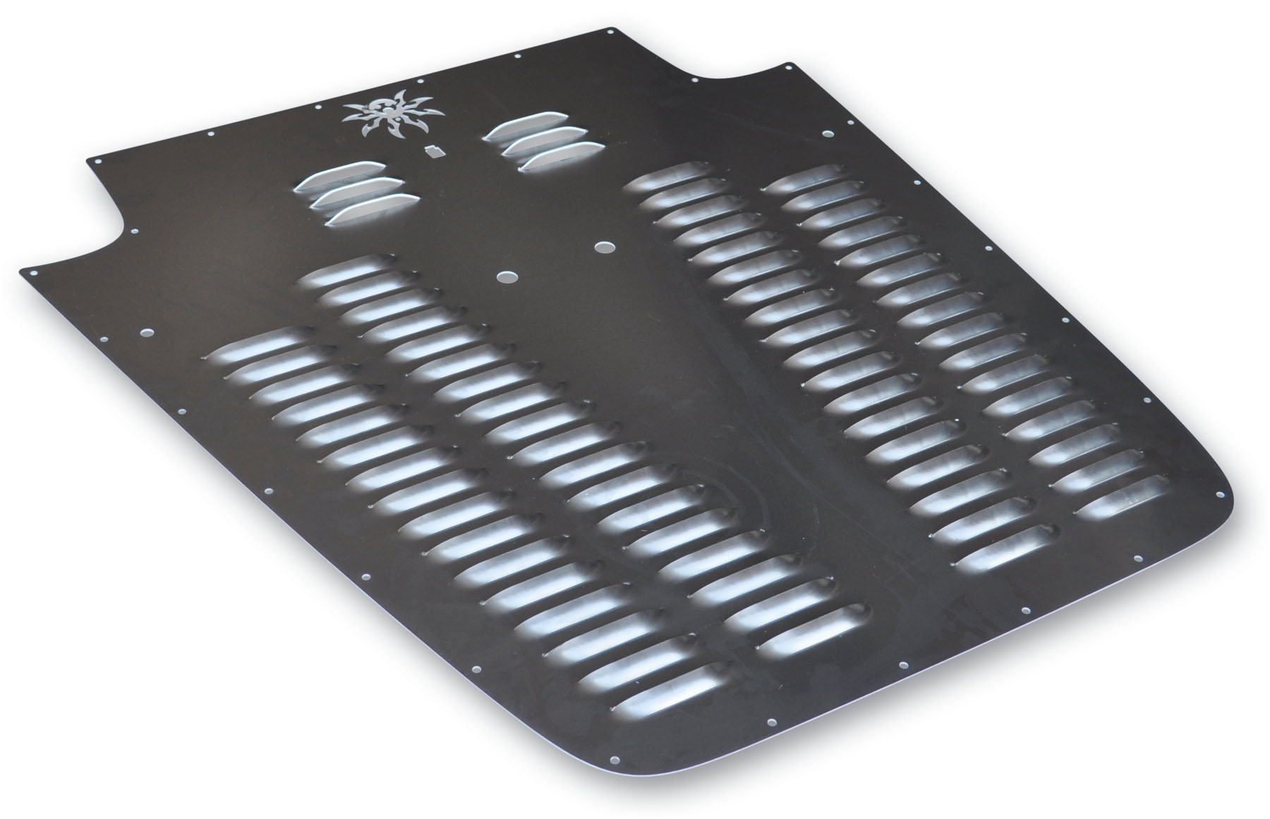 The Poison Spyder Hood Louver helps keep your engine running cool by promoting airflow through the engine compartment. Many factors can contribute to high under-hood temperatures, which can translate to higher engine coolant temperatures and overheating. Headers, slow speeds, flex fans, and the cramped spaces of the engine compartment can all contribute to increased heat and reduced airflow.