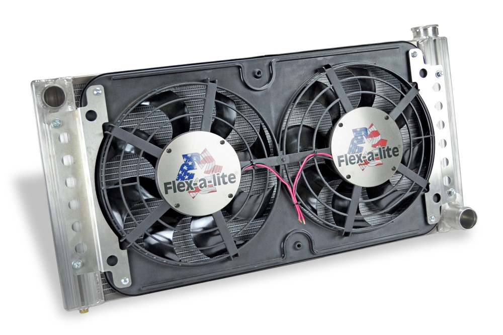 Universal Fit Flex-a-fit Slim Profile Aluminum Radiator With 26 Inch Core And Left Hand Inlet And Dual 12 1/8 Inch Lo-Profile S-Blade Electric Fans Flex-A-Lite