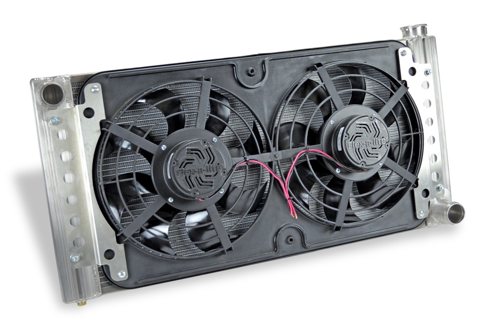 Universal Fit Flex-a-fit Slim Profile Aluminum Radiator With 26 Inch Core And Left Hand Inlet And Dual 12 1/8-inch X-Treme S-Blade Electric Fans Flex-A-Lite