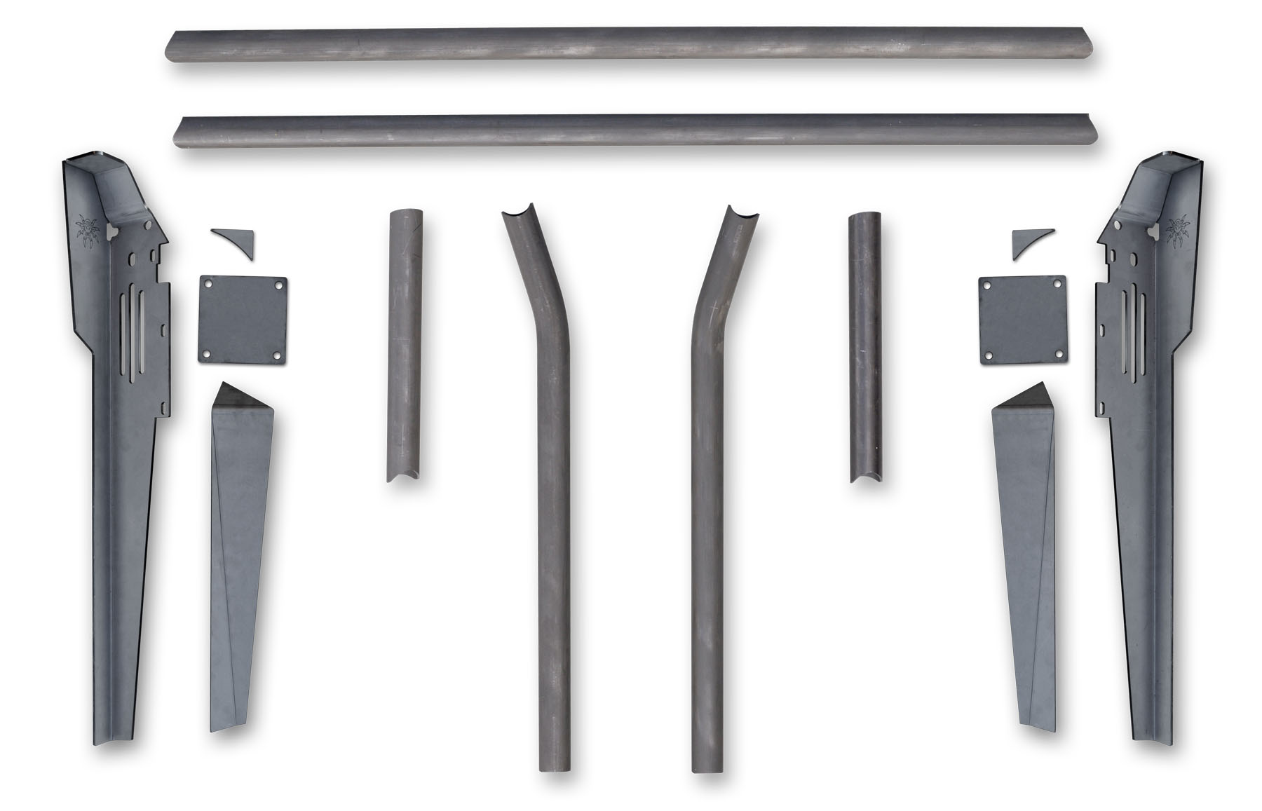 The Lower A-Pillars and gussets are CNC laser cut and precision brake-formed for quality and fit. Tubular kit components are constructed from 1.75 inch .120 wall DOM structural tubing. All tubular components are CNC-bent and laser-notched for a precise fit, and laser-marked with reference numbers for easy identification and installation.